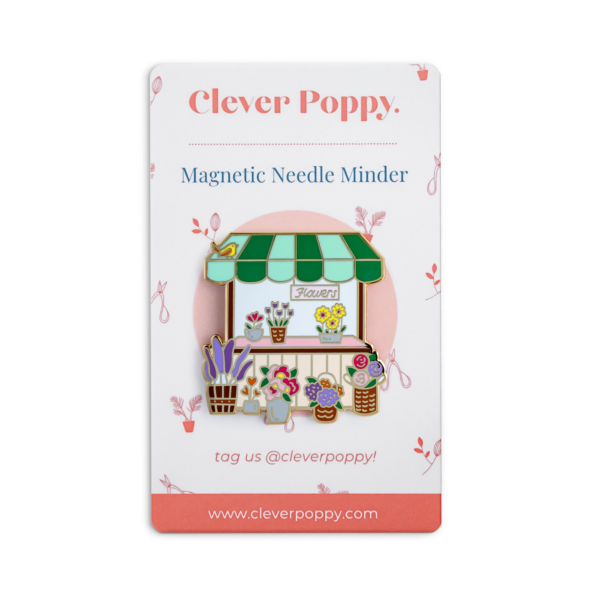Our magnetic Needle Minders are made with hard enamel and two sturdy magnets.