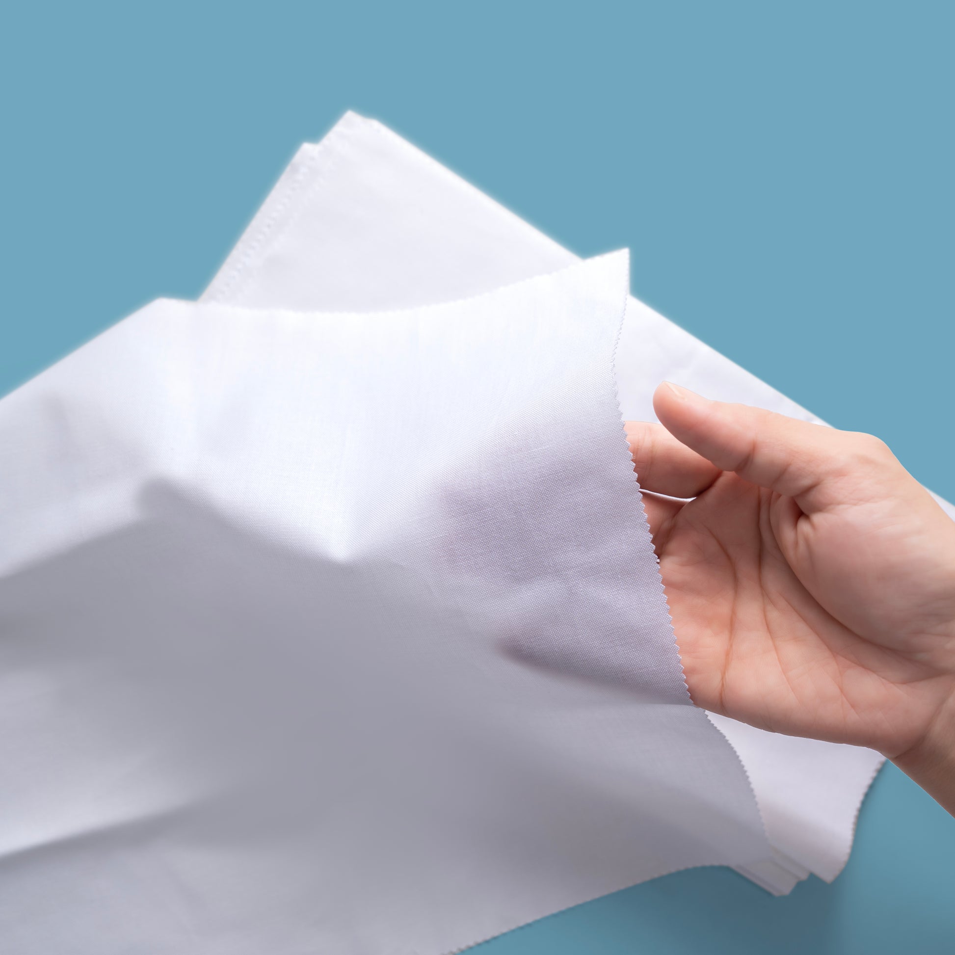 Each pack contains five pieces of square Cotton Fabric in White (27cm x 27cm)