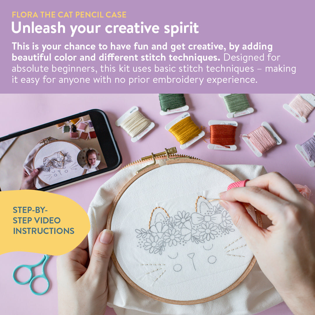 Get creative with our Flora the Cat Pencil Case Kit, a fun and functional project that teaches you how to stitch our Flora the Cat onto a premium 100% cotton canvas pencil case. It’s the perfect way to create a beautiful, custom piece to store all your favorite art supplies.